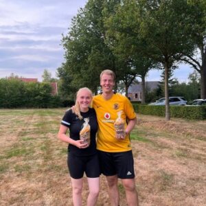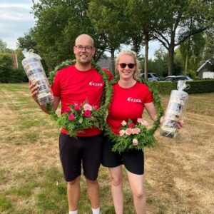 De krans wie foar Tessa & Rik, de premie foar Femke & Menno, de earste priis yn e offalronde foar Dorien & Arie (ynfaller Geek).